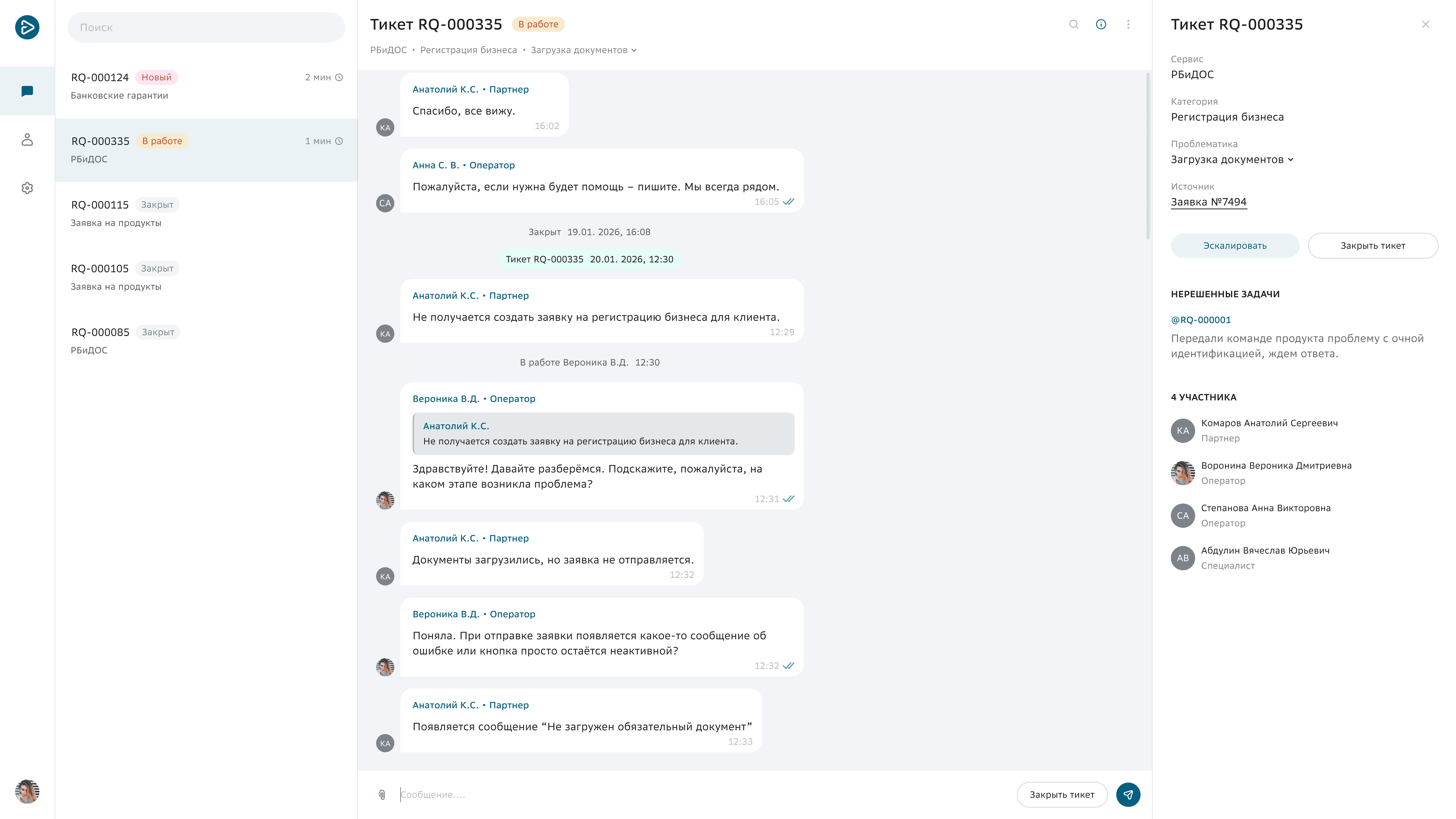 В продукте есть множество сценариев: регистрация бизнеса, банковские гарантии, подключение продуктов. Пользователи сталкиваются с вопросами на разных этапах и не должны разбираться, куда именно обращаться.